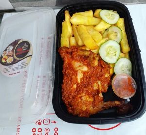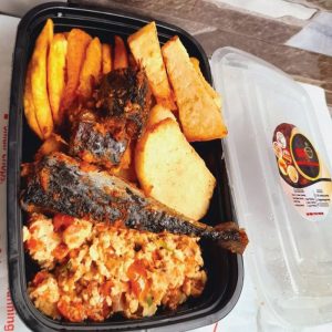 Jollof Rice and Chicken / Jollof Rice and Goat Meat / Pasta and chicken / Pineapple fried rice / Spaghetti and chicken
