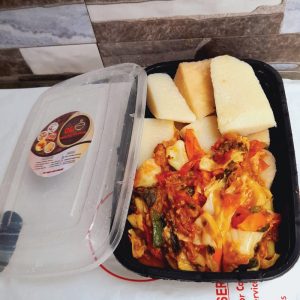 Jollof Rice and Chicken / Jollof Rice and Goat Meat / Pasta and chicken / Pineapple fried rice / Spaghetti and chicken